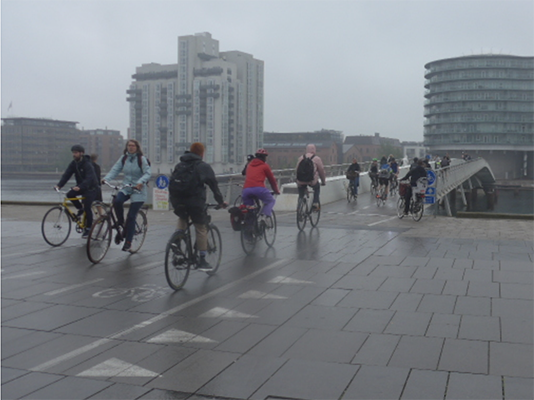 Some examples of the infrastructure and facilities available for cyclists are shown in Figure 3. There are strict cycle road codes enforced by the cycling community (and woe betide you in Copenhagen if you don’t keep close to the right-hand side of the cycle track, particularly when someone is intent on over-taking at speed). However, the largest difference between Scandinavia and New Zealand is the courtesy of the car and truck drivers towards their fellow road users. Even if cyclists are simply standing at an intersection idly chatting or looking at their GPS map with little intention to cross, the cars and trucks both sides of the road draw to a halt with the drivers warmly smiling. The cyclists then feel obliged to cross the road even if they don’t want to!